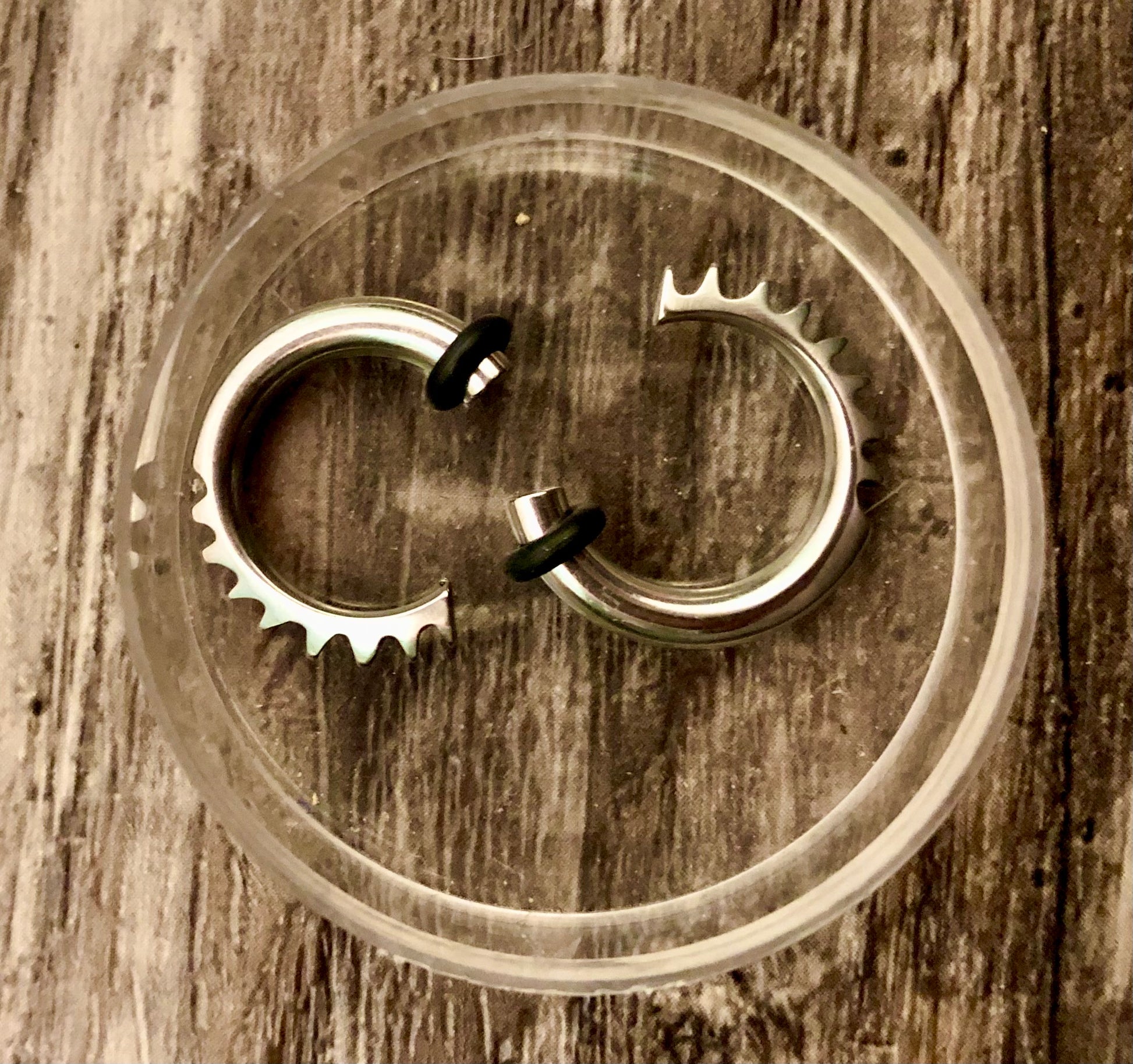 A Captive bead ring, is a ring that holds a ball suspended between the two ends of a hoop, by tension. Smaller gauges can be bent by hand, however it is suggested to use Ring Opening Pliers and Ring Closing Pliers if you wish to change it yourself. You can also go to most local tattoo if your ordering on line , or contact Heather Kingsley at Orgalla Designs Tattoo & Body Piercing, for any of your professional body piercing needs.